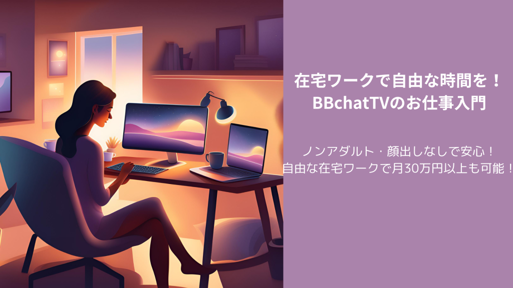 BBchatTVで在宅ワークを始めませんか?顔出しなし&ノンアダルトで月に30万円〜50万円の収入を得られる方法を詳しく解説!初心者でも安心して取り組める柔軟な働き方を紹介します。